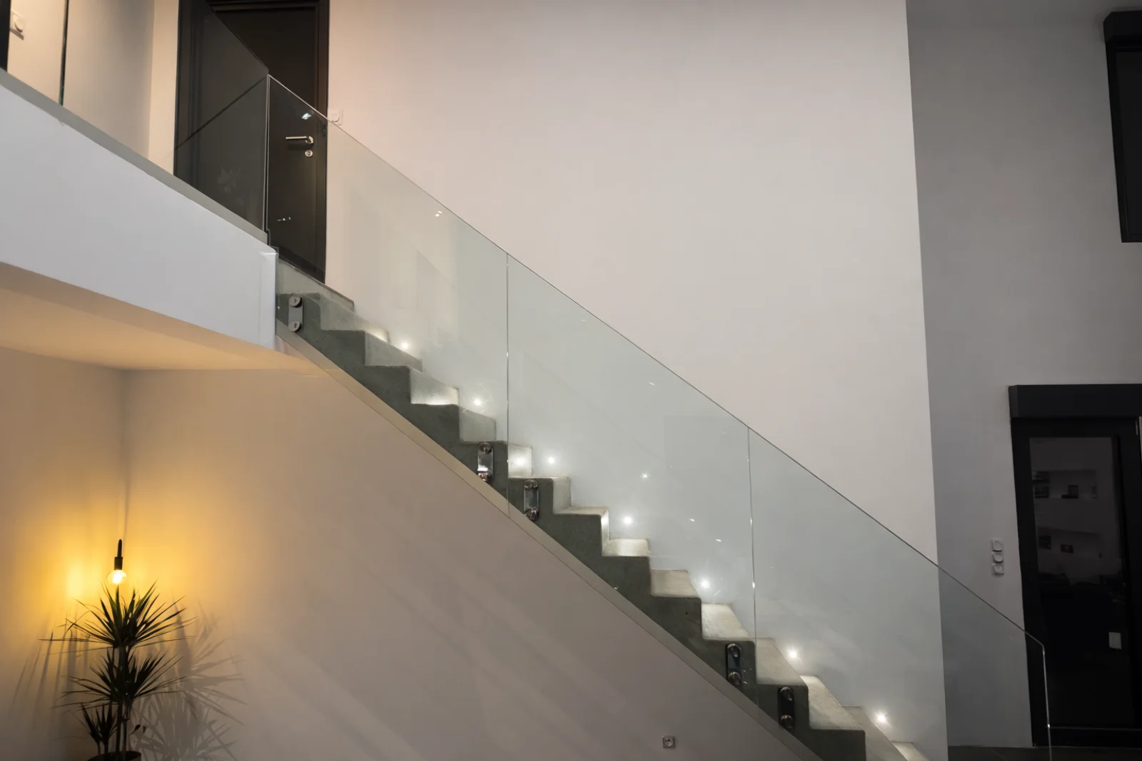 Un garde-corps d'escalier en verre obéit à des règles de fixation, de hauteur et de résistance spécifiques. Voici ce qui le distingue.