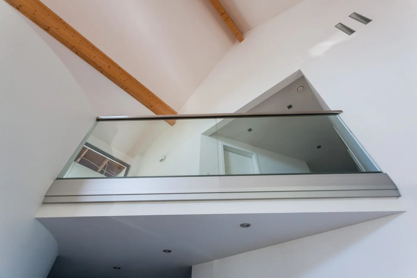 Nous proposons également une version cintrée de nos garde-corps en verre, adaptée aux mezzanines et paliers à forme courbe.